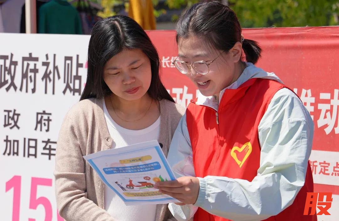 ◎ 江苏省海安市墩头镇青年志愿者向过往群众宣传消费品国家补贴的有关政策|图源:视觉中国
