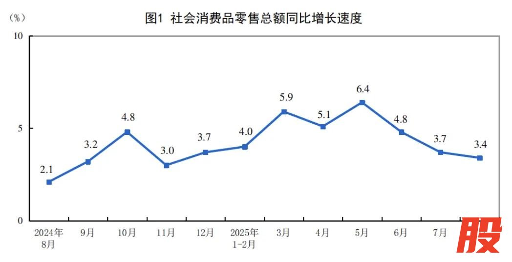 汽车稳增长、家电谋升级、3C调结构,国补的流水重塑了制造业的上下游。但这种增长仍是短期的。在财政杠杆的放大下,企业提前兑现了未来的销量,消费者提前透支了后续的需求。国家统计局数据显示,2025年8月份,社会消费品零售总额39668亿元,同比增长3.4%,增速自五月以来接连放缓。