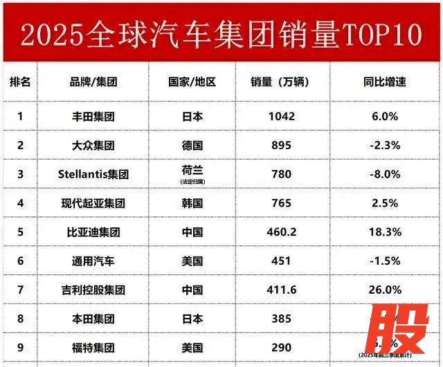 曾几何时,“全球汽车销量前十”榜单几乎是欧美日巨头的固定席位。而如今,中国车企不仅稳稳占据两席,而且增势强劲。其中,比亚迪18.3%和吉利26%的同比增速,成为榜单中最具成长性的力量。